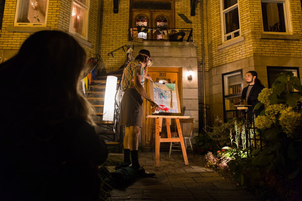 Afin de rendre l’univers imaginé encore plus tangible, l’exposition est animée le temps de quatre soirs par un parcours théâtral dans le quartier. ( Photos : Débora Flor )